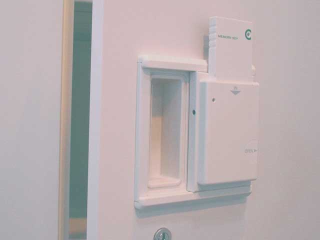 これは、カバーロックと呼ばれる部品を既存のキャビネットの取っ手の部分を覆うように取り付け、メモリーキーを差し込んだ場合のみ、ふたを開けて中の取っ手を操作して扉を開くことができるものです。