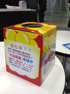 弊社が参加しているデータセキュリティコンソーシアムブースでは、抽選を行っていますが、なんとまだパソコンが3台残っています。